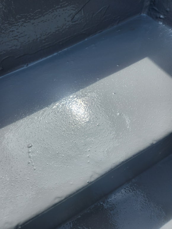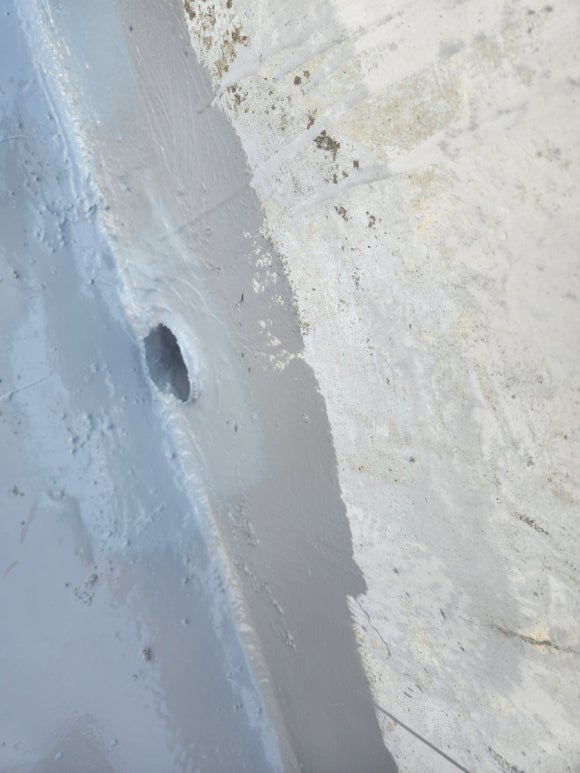 어제 새벽에 나가서 작업을 했는데도 기포 자국들이 몇 개 보이네요. 높은 온도에서 우레탄 방수 중도 작업을 하면 이런 식으로 기포가 생깁니다. 요즘은 아침에도 덥긴 합니다. 기포가 이 정도인 게 오히려 다행이라는 생각이 드네요. 기포가 있는 곳들은 우레탄 중도가 얇게 올라간 상태이므로, 우레탄 실리콘으로 한 번 더 메꿔줄 겁니다.