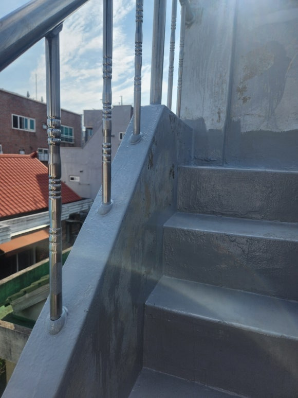옥상 난간 주변도 우레탄 중도를 다 발랐었고요, 우레탄 상도까지 꼼꼼하게 발라주었습니다.