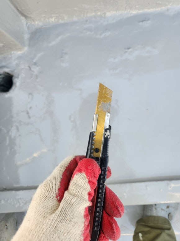 우레탄 중도는 잘 건조되어 있네요. 바로 우레탄 상도 작업이 가능합니다.