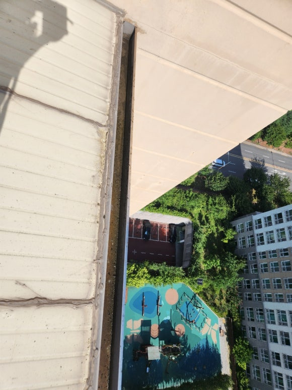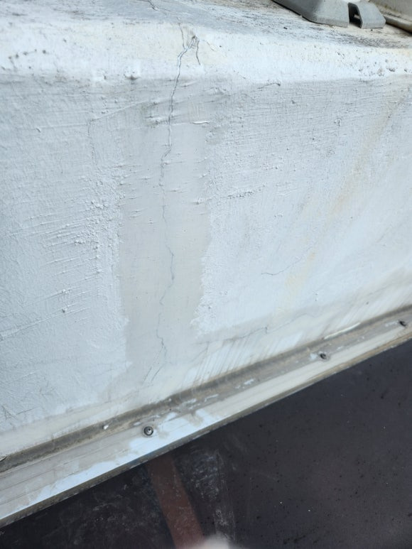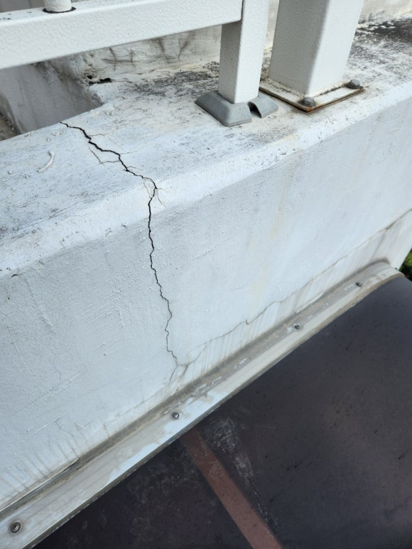 렉산쪽에 가까이 생긴 외벽 크랙들은 퍼티로 다 잡아줄겁니다. 이렇게 세로로 나 있는 크랙속에 물이 타고 들어가서 누수가 되는 원인이 되기도 합니다. 퍼티로 크랙 보수하고, 내일 우레탄페인트 칠할 때 같이 칠해줄겁니다.