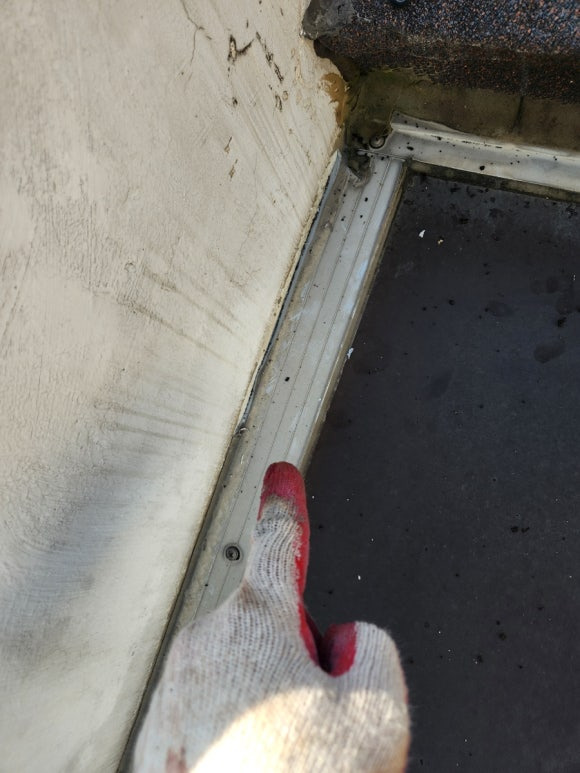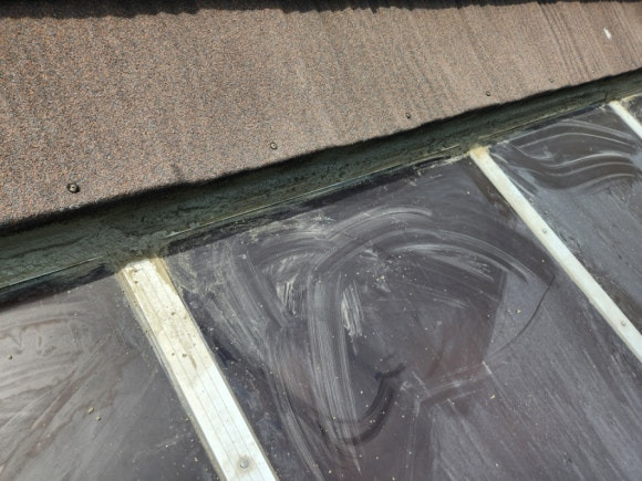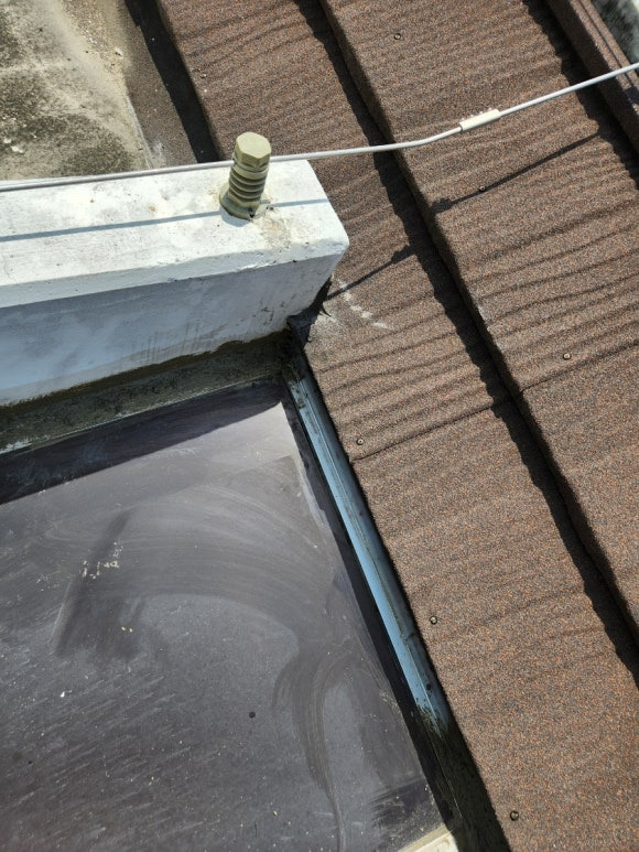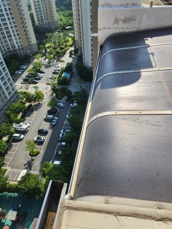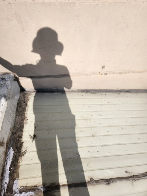 실리콘 덧방해놓은 자국이 보이네요. 누수가 있어 집주인분께서 셀프로 작업해놓으신거라 합니다. 판넬 연결부위와 피스자리에도 실리콘 처리가 다 잘 되어있네요.