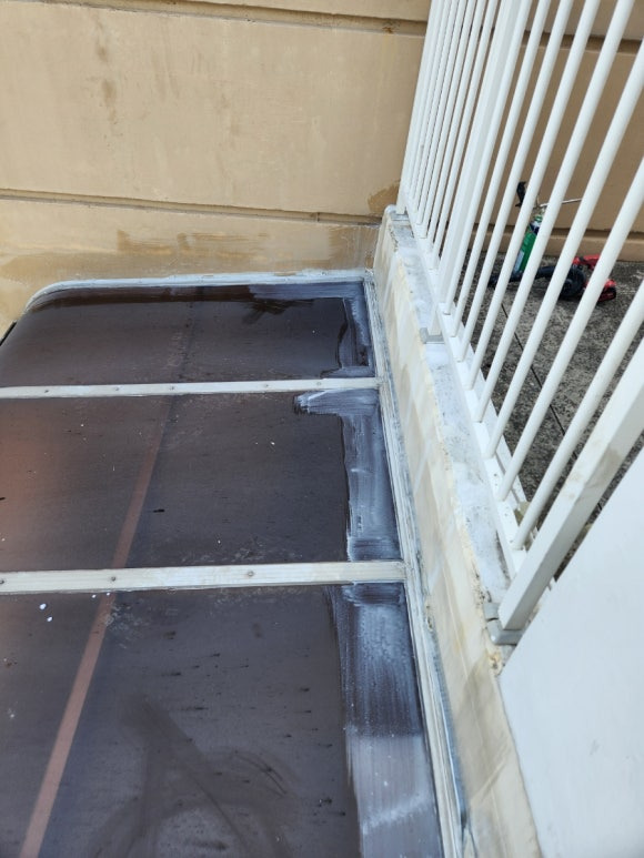먼저 렉산 배수로에 있는 이물질 청소부터 했습니다. 배수로에 이물질이 가득하면 물이 원활하게 흐르지 못하고 고이면서 누수의 원인이 되기도 합니다. 여기는 현재 누수부위는 아니지만, 예방차원에서 작업하는김에 배수로 청소까지 다 해드립니다.