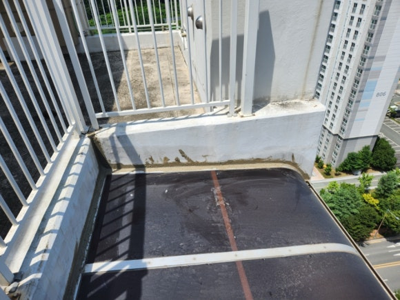 누수가 되는 부위는 오른쪽에 아파트 외벽과 만나는 코너자리 입니다. 여기를 신경써서 방수작업을 해야 합니다.