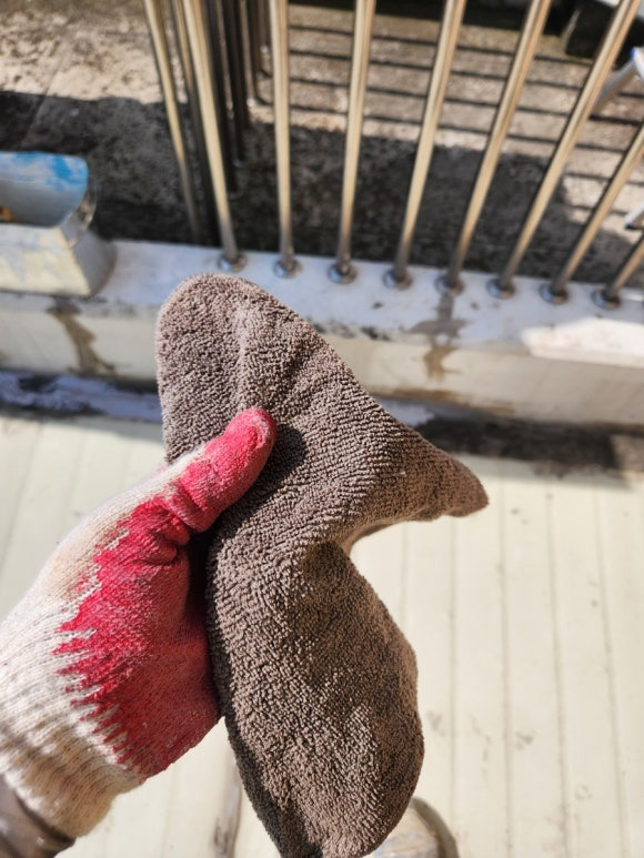 빗자루와 송풍기로 청소까지 깔끔하게 해놨습니다. 오늘 1차방수처리한게 마르고 나면 내일은 실리콘으로 2차방수처리, 그리고 우레탄 페인트로 마감처리까지 합니다.