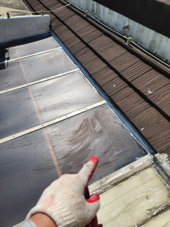 판넬지붕과 렉산 붙어있는 곳은 1차방수작업 완료했습니다. 다른쪽 렉산으로 넘어갑니다.