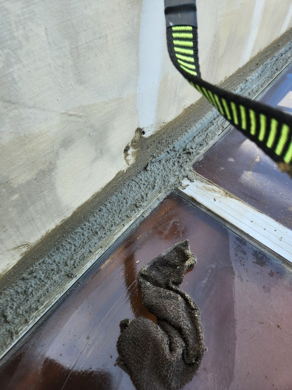 그리고 렉산플라스틱(폴리카보네이트, PC판)과 프레임 사이에는 내일 렉산용 실리콘을 쏠거기 때문에 몰탈이 묻어있으면 잘 안쏴지므로 닦아가면서 작업했습니다.