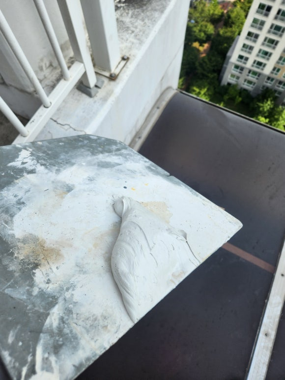 첫번째 렉산 들뜬 실리콘 제거, 외벽 크랙퍼티 보수 완료했습니다. 이제 다른 곳 작업하러 갑니다. 렉산 2곳이 다른 공간에 있어서 이동합니다.