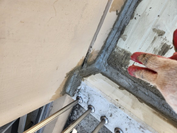 렉산과 아파트 외벽이 만나는 부위들도 방수액섞은 몰탈로 1차방수작업 했습니다.